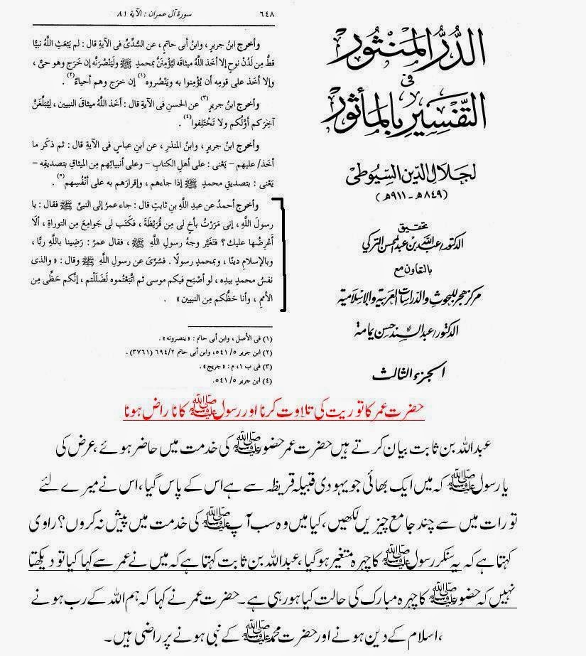 عمر کو توریت سے بہت زیادہ محبت تھی جس کی وجہ وجہ سے حضرت محمد ص بہت غصہ ہوئے