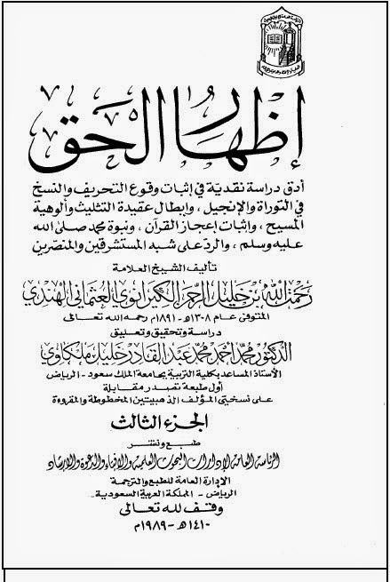 اس سے پہلے ہم ایک پوسٹ کر چکے ہیں " علماۓدیوبند کااقرارشیعہ تحریف قرآن کےقائل نہیں ہیں " جس میں کتاب " بائیبل سے قرآن تک " کا حوالہ دیا گیا یہ کتاب اصل میں اظہار الحق کا اردو ترجمہ ہے آپ پوری عبارات کا ترجمہ وہاں سے دیکھ سکتے ہیں پوسٹ کا لنک