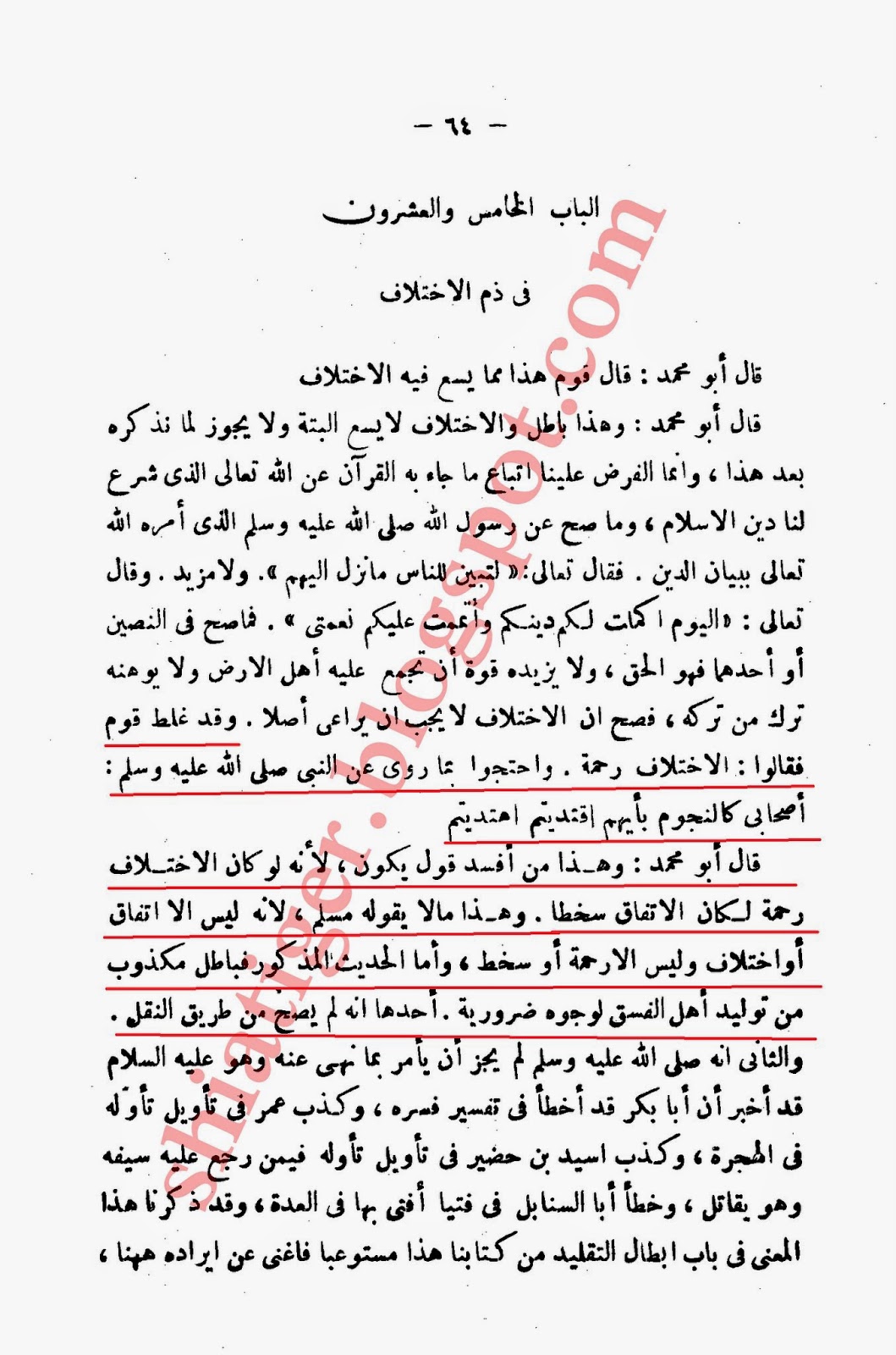 لوگوں نے غلط کیا اور کہا ہے کہ اختلافِ[اصحاب] رحمت ہے اور اس پر دلیل اس روایت سے کیا جو رسول[صلی اللہ علیہ و آلہ] سے کرتے ہیں کہ :میرے " میرے اصحاب ستارے کے مانند ہیں جس کی بھی پیروی کرو گے ہدایت پاو گے "
