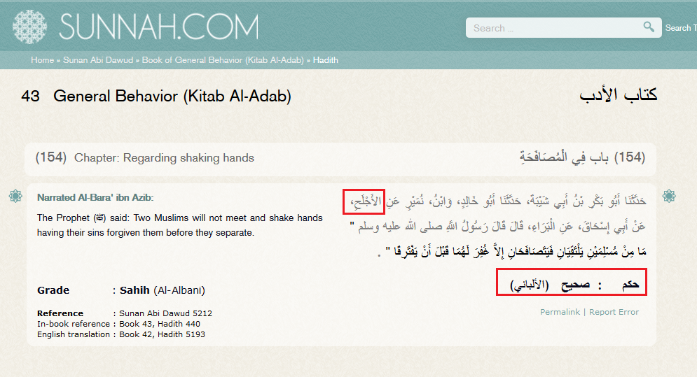 ملاحظہ کریں الأجلح سے لی گئ روایت سنن ابو داؤد میں جس کو صحیح کا درجہ دیا گیا ھے