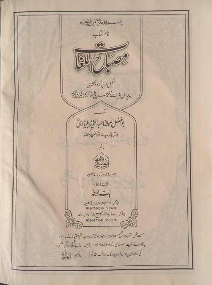 مشہور عربی لغت "مصباح اللغات" ملاحظہ کریں: