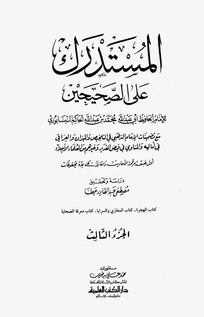 الحاكم النيسابوري، ابو عبدالله محمد بن عبدالله (متوفاى405 هـ)، المستدرك علي الصحيحين، ج3، ص134، تحقيق: مصطفي عبد القادر عطا، ناشر: دار الكتب العلمية - بيروت الطبعة: الأولى، 1411هـ - 1990