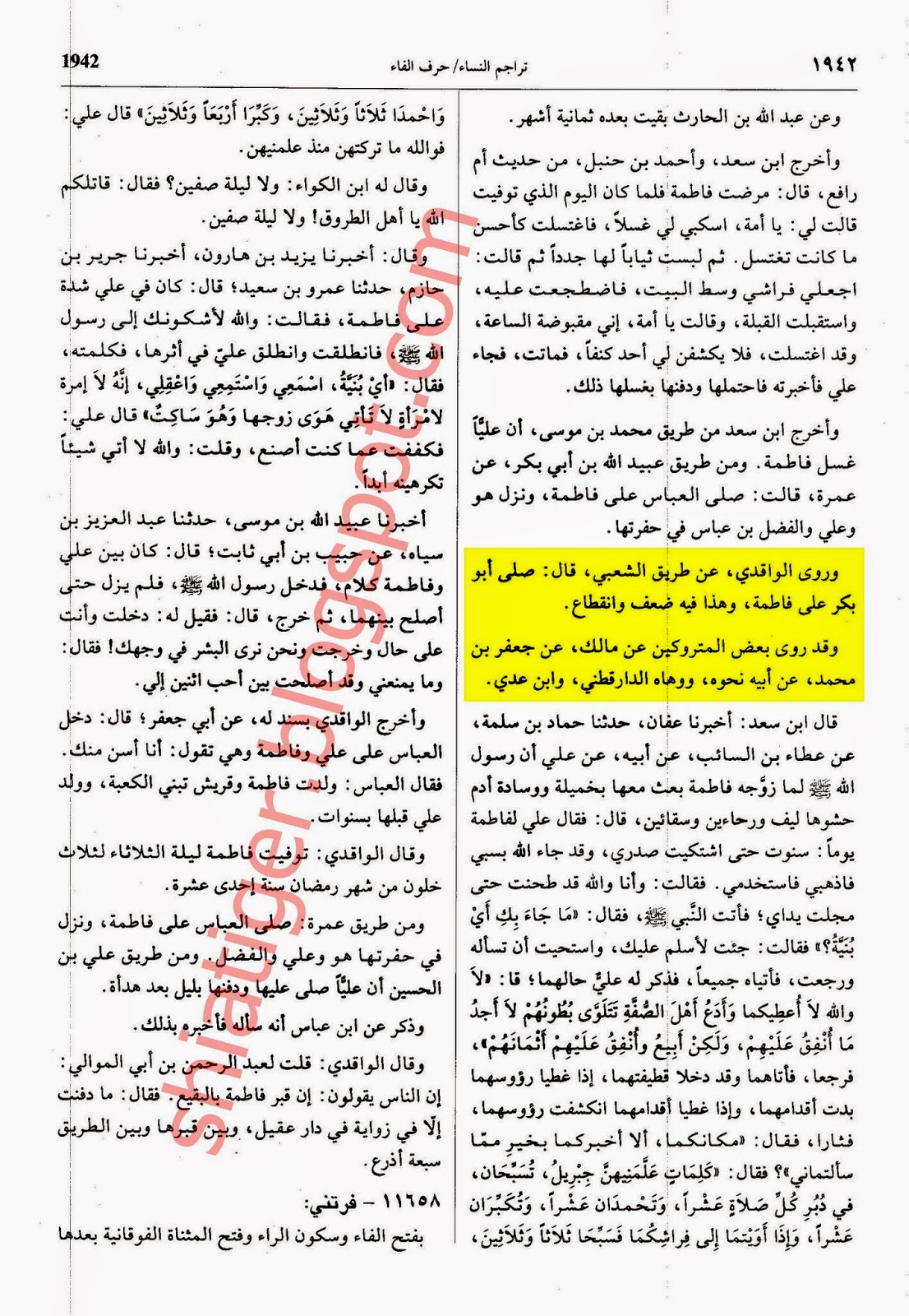 کتاب الاصابہ فی تمیز صحابہ (عربی ) باب تراجم انساء / حرف الفاء صحابی 11657 صفحہ نمبر 1942 المکتبہ العصریہ بیروت