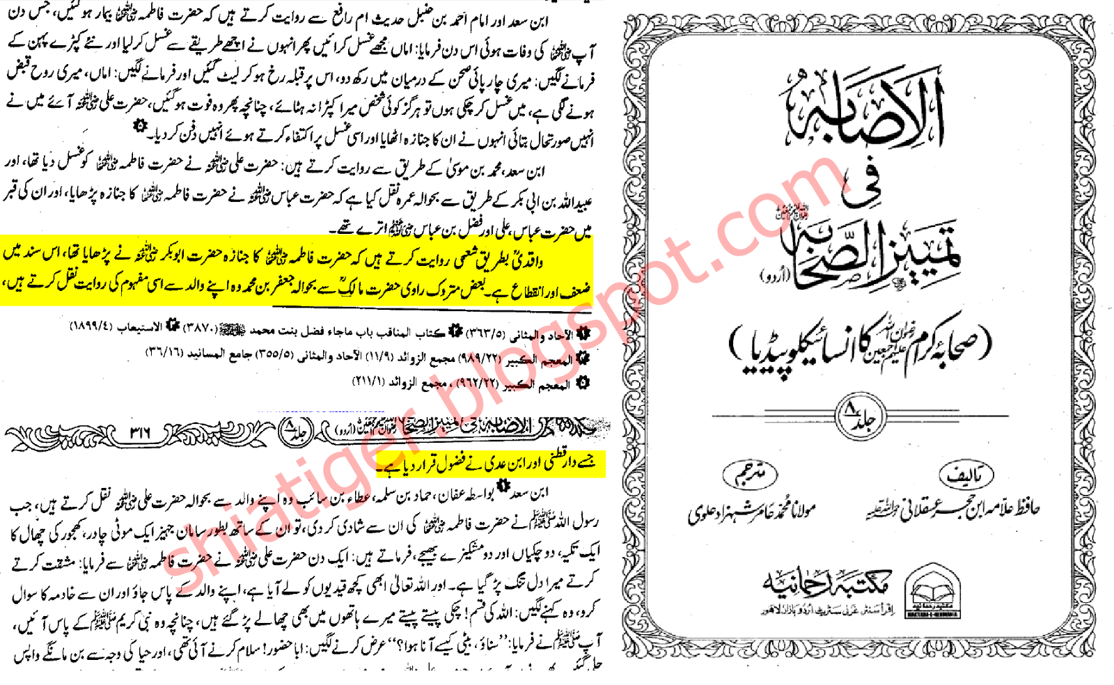 کتاب الاصابہ فی تمیز صحابہ (اردو )جلد 8 صفحہ 315-316 مکتبہ رحمانیہ لاہور