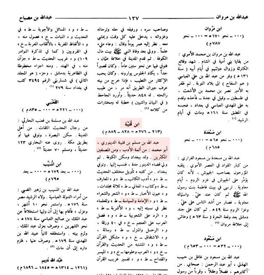 1۔ الاعلام قاموس تراجم جلد 4 صفحہ 137