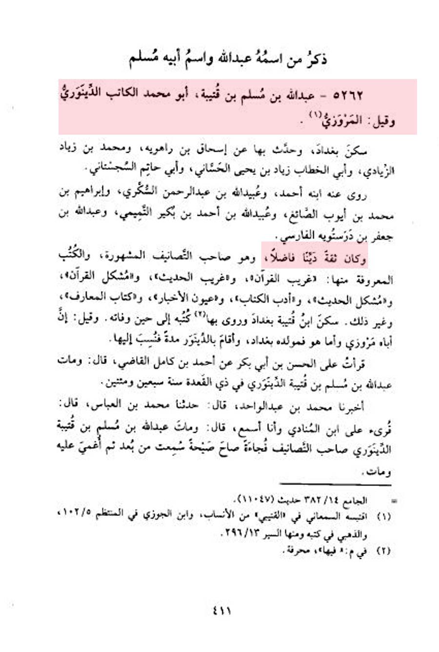 1۔ تاریخ بغداد جلد 11 صفحہ 411
