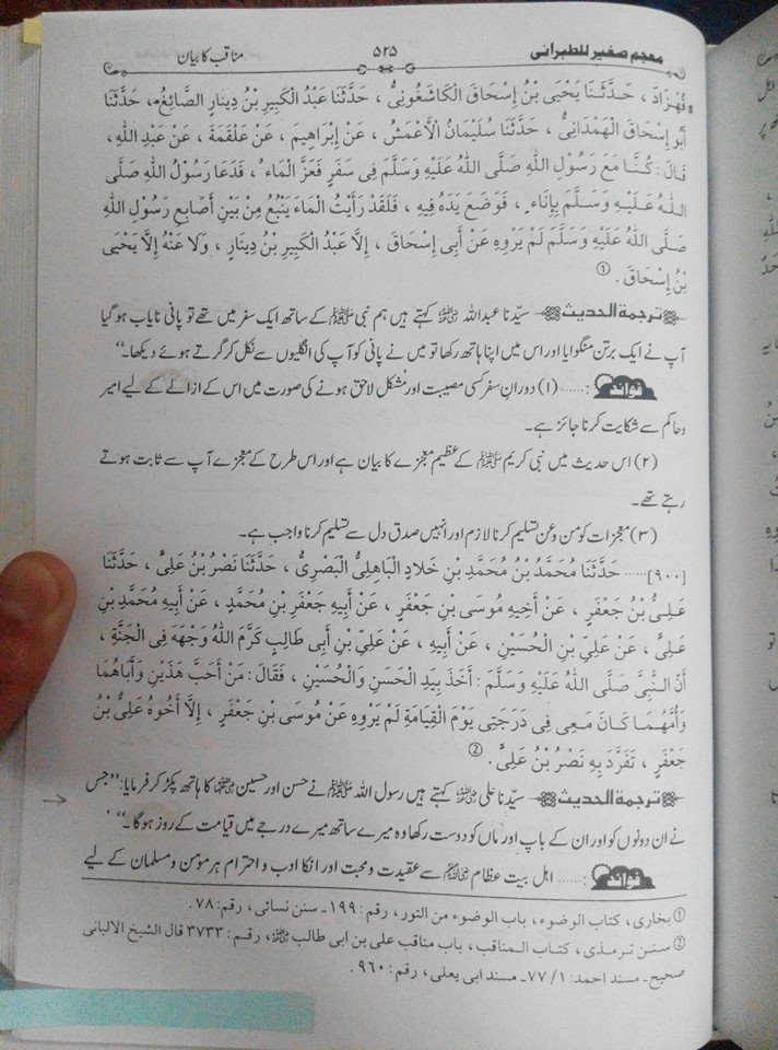 حوالہ : معجم الصغیر -مع تحقیق و تخریج / کتاب المناقب / صفحہ ٥٢٥ / حدیث ٩٠٠ / طبع الکتاب انٹرنیشنل دھلی