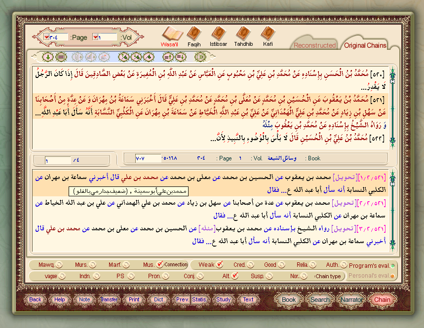 [521] مُحَمَّدُ بْنُ يَعْقُوبَ عَنِ الْحُسَيْنِ بْنِ مُحَمَّدٍ عَنْ مُعَلَّى بْنِ مُحَمَّدٍ عَنْ مُحَمَّدِ بْنِ عَلِيٍّ الهمداني قَالَ أَخْبَرَنِي سَمَاعَةُ بْنُ مِهْرَانَ وَ عَنْ عِدَّةٍ مِنْ أَصْحَابِنَا عَنْ سَهْلِ بْنِ زِيَادٍ عَنْ مُحَمَّدِ بْنِ عَلِيٍّ الْهَمْدَانِيِّ عَنْ عَلِيِّ بْنِ عَبْدِ اللَّهِ الْخَيَّاطِ عَنْ سَمَاعَةَ بْنِ مِهْرَانَ عَنِ الْكَلْبِيِّ النَّسَّابَةِ أَنَّهُ سَأَلَ أَبَا عَبْدِ اللَّهِ...